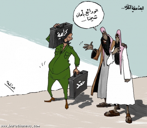 الكاريكاتير الأول جيد ولكن هذا الكاريكاتير الثاني هل فهمته؟ وعرفت هو يدافع عن من من وضد من؟ أم تنقلين بلا تفكير؟ |